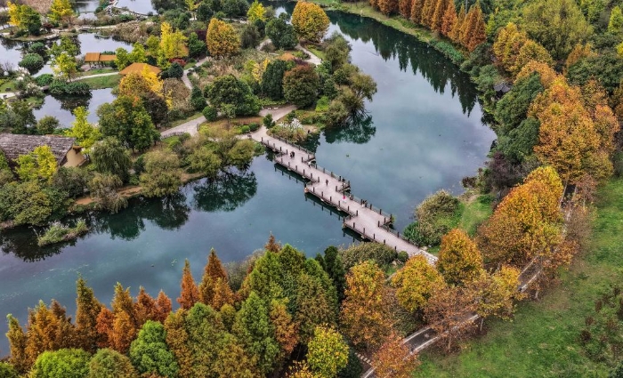 貴州省貴陽市の花渓国家城市湿地公園。(11月6日、ドローンから、貴陽=新華社記者/陶亮)
